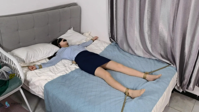 A醒来后发现自己的双手手腕和双脚脚踝都被绳子绑住,固定在床的四个脚上,即双手固定在床头的两个角,双脚固定在床尾的两个角,整个人呈“大”字型固定在床上。A挣扎着(丝袜脚挣扎特写为主,手腕挣扎特写为辅)大喊:怎么回事,谁绑住我了?女声旁白:“这是一间会吃人的房子,专门治你们这种贪小便宜的人”A:“我是个无家可归的女人,我在这里也只是暂住”。女声旁白:“你找到工作了,也有男朋友愿意养你,为什么不离开”。A羞耻地低下了头:“对不起”。女声旁白:晚了,我要让你付出代价”。A开始挣扎,越挣扎越紧,旁白:“你还是不要抵抗,好好享受吧,捆仙绳是越绑越紧的”。A:救命啊!谁来救救我?旁白:没人能救你,好好享受吧。说完,一条绳子又出来了,勒住了A的脖子,这条绳子还拿过来了眼罩把眼睛蒙住,用短丝袜堵住了嘴。A呜呜呜呜惨叫着,由于太刺激且身体克制不住乱动,绳子越来越紧(丝袜脚挣扎特写)旁白:“我觉得这是奖励你,而不是惩罚你”。说完,一块圆形的东西放置在了a的背和床之间,a的背和床夹住了这块东西。旁白:“这种炸弹只要你乱动,就会爆炸,所以小心啰”。A既不敢乱动,又受不了刺激,又无法得救,呜呜呜呜地发出声音。。。