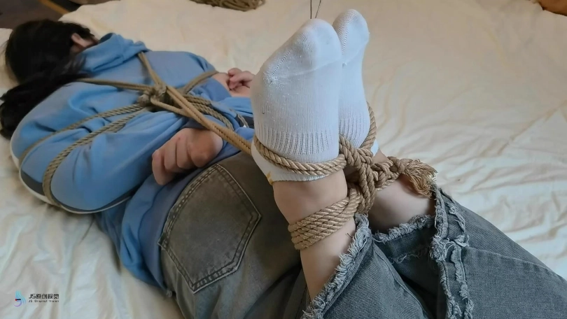 【JS】【梦琪】床上白袜驷马捆绑胶带封嘴TD刺激脚恋足