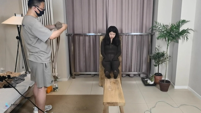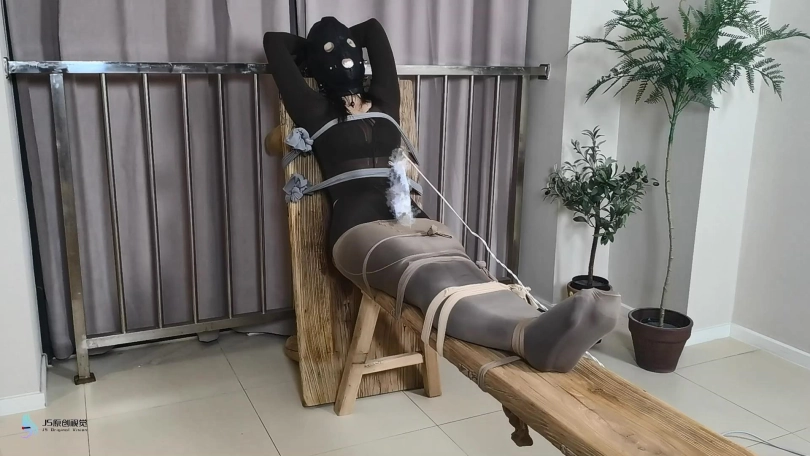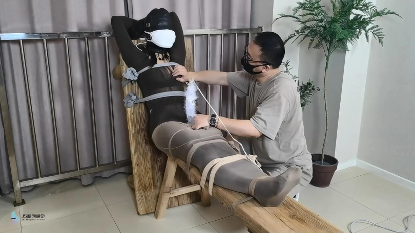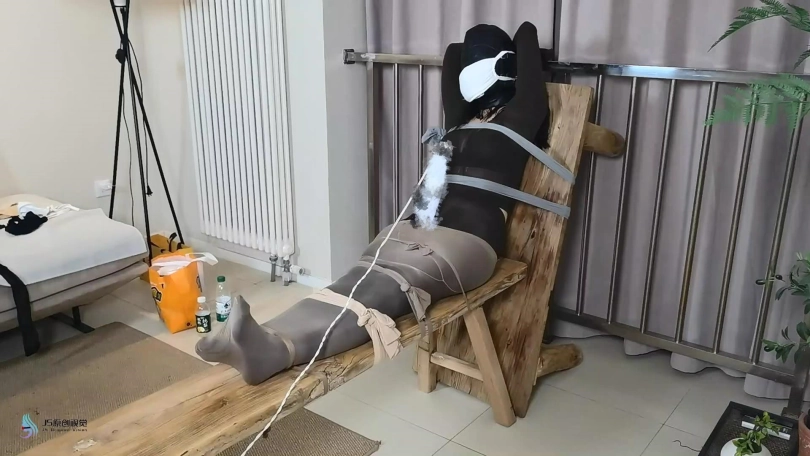 【JS】【妙一】尼龙女孩老虎凳束缚丝袜包裹纱布堵嘴头套口罩原味棉袜封鼻棒棒刺激