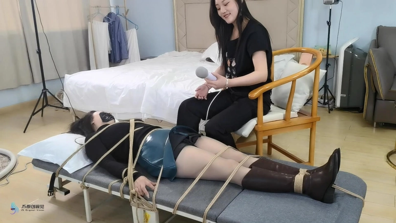 哈妮将自己穿过没洗的丝袜塞进少妇的嘴里,用棒棒刺激着她的下面。用丝足在她裆部摩擦,另一只脚放在少妇的脸上让她闻。将少妇放倒床上,脱去少妇的靴子,贪婪的闻着少妇的脚。脱下少妇的裙子,用丝足不断摩擦少妇的裆部,挑逗着她。少妇很快发出享受的声音。。。