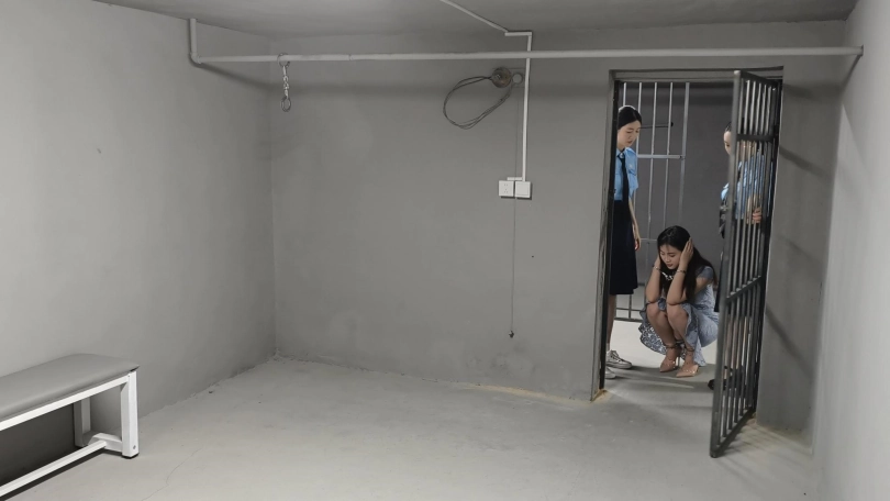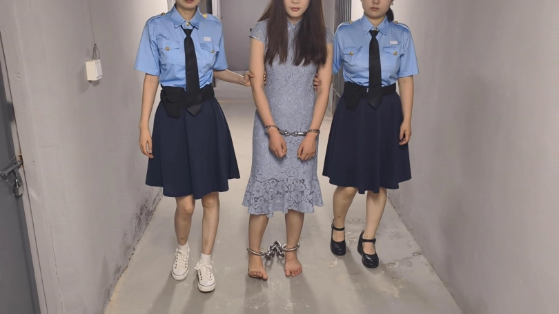 【忘忧社】美女身高170新模特依一被抓捕,吊铐,手铐脚镣,订死镣,最后被关入牢房。