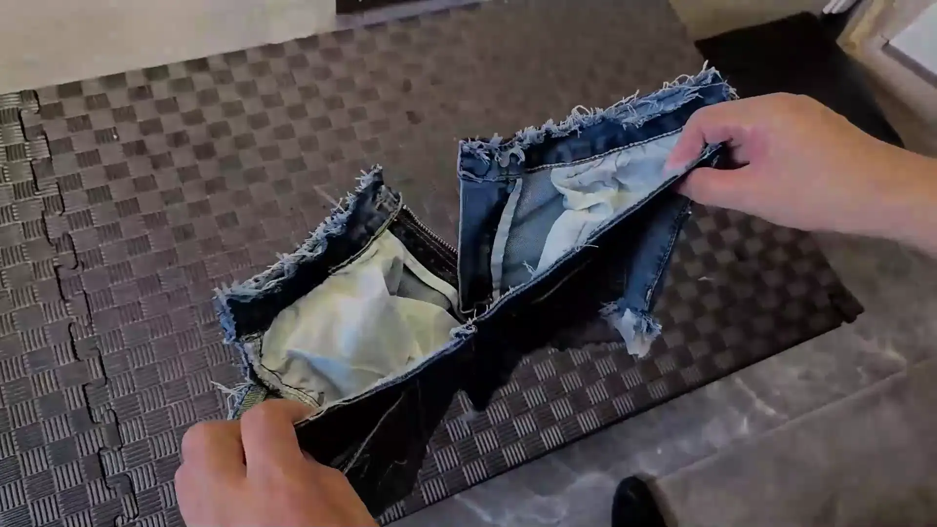 说干就干,找出上次准备扔掉的牛仔裤,拿出我的御用剪刀,咔嚓、咔嚓……