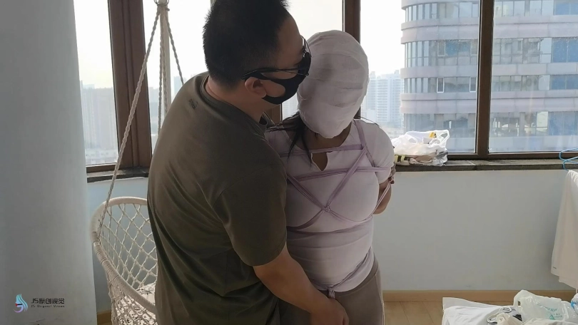 【JS】【曼妮】绸带驷马捆绑瑜伽服白棉袜堵嘴包头恋足棒棒刺激