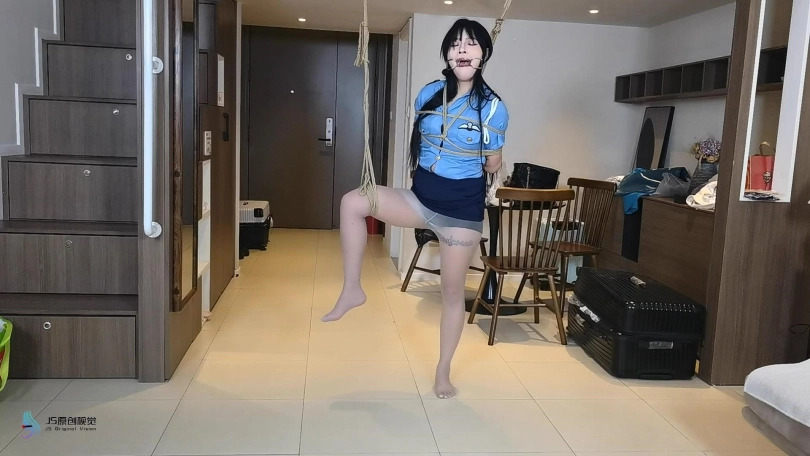 A女士开了一家主题S,M酒店,酒店房间内全是各种道具供客人玩耍。有一天,女JB小姐接到报J电话,一名入住过该酒店的客人声称酒店房间内装有隐藏摄像头,希望对其进行调查。B小姐放下电话后立即前往酒店,见到了酒店老板A女士后,让A女士带她进入房间进行调查,A女士表面上笑脸相迎,将B小姐带入了房间,趁B小姐在房内四处寻找摄像头的时候,A悄悄掏出一块沾有药物的手帕从背后一下子捂住了B的口鼻,B挣扎了一会儿后便失去意识晕倒在地。A看着躺在地上的B,喃喃自语道:“这么漂亮的女J,得好好调焦她一番才过瘾”说完便将B拖到了床上,用绳子将其绑了起来…B醒来之后,发现自己竟被驷马绑在床上无法动弹,这时A走了过来:“哟,J花小姐,您终于醒了”B挣扎了一会后愤怒地说道:“你在干什么,你这是袭J你知不知道,赶紧把我放开,不然你就等着去牢里过你的下半辈子吧”A听完笑着说道:“哎哟喂,不愧是女J呀,都被绑成这样了还是这么凶,J花小姐,你可看好了,这箱子里装的道具可都是专门为您准备的,我非得把你调焦成我的宠物不可”A说完指了指地上的工具箱,那里面装满了各种sm道具…“你个变态人渣!快放了我”B朝A怒吼道,看着地上的工具箱B的眼神里不由自主地闪过一丝恐惧。“J花小姐,你太吵了,那就先让您尝一下口球的滋味吧”A说完便从工具箱里拿来一个口球戴在了B的嘴上,之后将B的鞋子脱了下来,看着B还穿着性感的丝袜,A好奇地问道:“J花小姐,你怕不怕痒呀?”说完之后A邪魅一笑,便开始用指尖轻轻地在B脚底板上来回划着,B这时奇痒难耐,可是嘴上戴着口球,只能呜呜地低声叫着,A挠完痒之后还不过瘾,看着B的丝足竟不由自主地亲了起来,玩弄了一阵之后,A想换一个玩法,便解开了B的口球,对其说道:“J花小姐,咱们现在换个玩法,我一定会让你成为我的奴隶的”说完还轻轻地摸了摸B的头,B看着地上的工具箱,陷入了深深的绝望之中……画面再度亮起时,只见B被脱了鞋单腿吊缚在房间里,嘴上依旧被塞着口球…这时A拿着棒棒一脸奸笑走来“J花小姐,来感受一下棒棒的威力吧”说完便用棒棒对B的裆部持续输出,在棒棒的强力震动下,B很快便达到了高C…A这时察觉到B的眼神里似乎充满了享受,便取下B嘴上的口球问道:“怎么样呀J花小姐,看起来被这样对待还让你挺兴奋的嘛”B此时眼神迷离地缓缓点了点头,她此刻似乎已经忘记了自己来酒店的真实目的…A看到B已经不再反抗,便将她的绳子解开让她乖乖躺在地上,B听话照做,A脱下鞋后便用自己穿着黑丝的脚在B身上不停划来划去,还踩在B的脸上,最后用脚不断摩擦B的裆部挑逗着她…A看着B一脸坏笑说道:“我这工具箱里还有一些东西想让J花小姐体验一下呢”说完便从箱子里拿出来项圈狗链还有小皮鞭,给B戴上了项圈之后A说道:“好了,我的乖小狗,主人带你散散步吧”说完便让B趴在地上,用狗链牵着B在房间内来回走着,一边走还时不时用小皮鞭抽打着B的屁股,走了几圈之后,A让B跪在床边,A坐在床上伸出脚来插进B的嘴里,并让B伸出舌头不停舔着她的脚,“现在愿意做我的宠物了吗?”A满脸笑容地问道,B此时也笑着点了点头……画面再次亮起,A躺在床上用狗链牵着B,B此时正在给A捶腿按摩,“舒服吗,主人?”B问道,A欣慰地笑着点了点头,而此时B身上穿着的也不再是那身象征着正义的J服,而是主人为她精心准备的可爱女仆装……