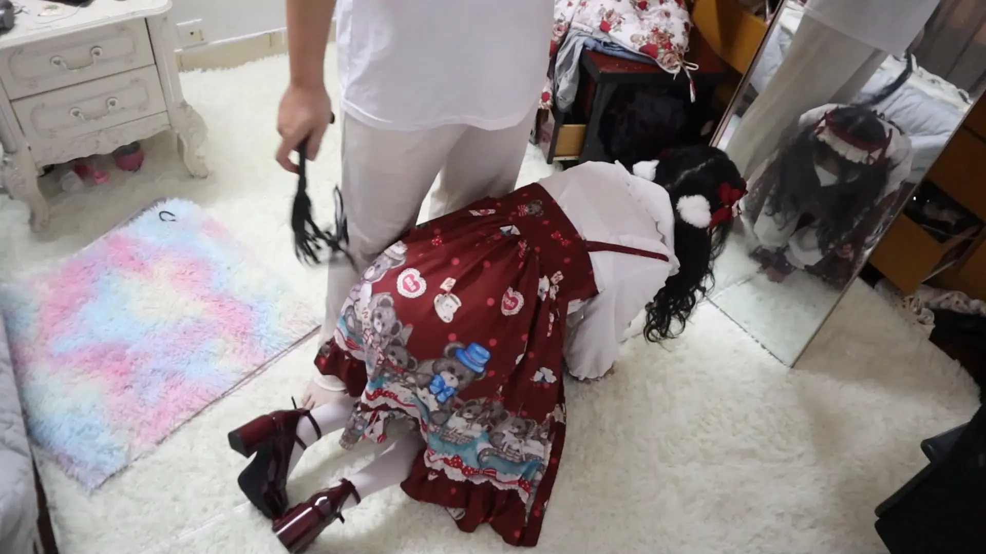 好久不见 清纯活力的属性M虞琳,圈养超大只高挑漂亮洛丽塔白丝少女母狗,对着镜子跪爬一边害羞一边发春的母狗,手脚被圈住,脖子上带狗链,调教之余掀起裙子被鞭子狠抽呜咽跪爬,一边被虐一边呜呜浪叫