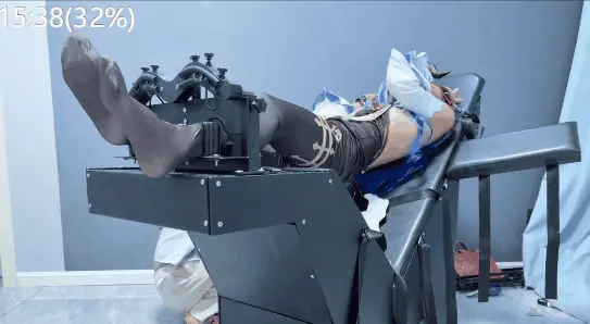 场景1:将糖糖固定在欧美重型痒刑床上,黑丝小脚固定在足枷中,双手用手铐铐住,绑在脑后。然后开始挠痒,挠脚底,挠全身,以脚底为主。