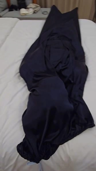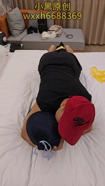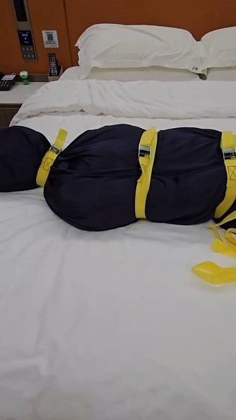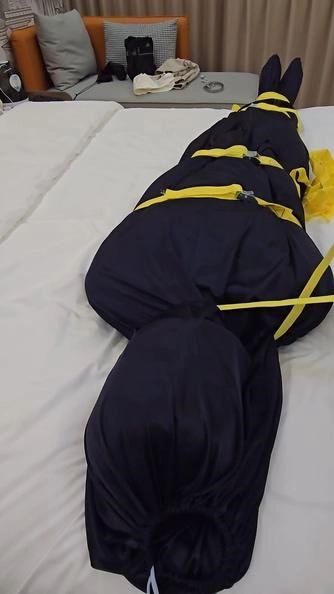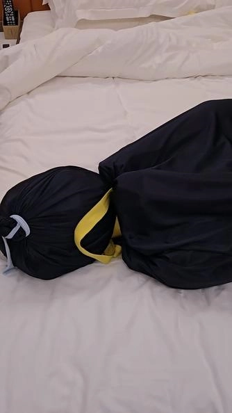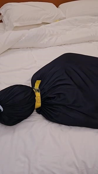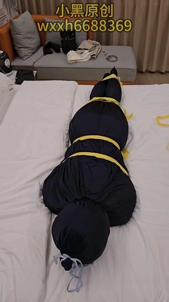 【小黑】装进丝袋再捆绑,让她在里面拿着棒棒自娱自乐,最后让她挑战自己解开。