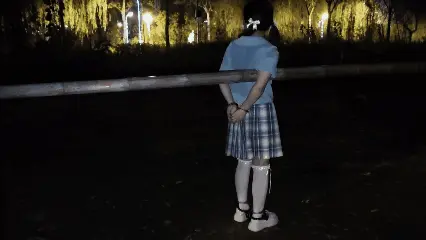 今天太阳还没落山,公园里有大量的人在饭后消食。小萝莉苏苏穿着JK,给自己戴上了手铐脚镣穿梭于公园之中,步履蹒跚,小心翼翼的走着。途中与数不胜数的人相遇:骑滑板车的小孩儿,遛弯的大爷大妈,手牵手的小情侣,还有很多钓鱼佬。十分的紧张刺激,有些人擦肩而过,十分好奇的看着他。苏苏心里别提有多紧张了,奈何被束缚住想藏也藏不了,一阵阵羞愧感涌上心头,之后来到了一棵树下,有一个天然的展台。给她牢牢的禁锢在了那里。把钥匙丢在了离她很近的地方。想要打开但是却够不到。只能眼睁睁看着行人在她不远处穿过,怀揣着紧张与不安的心情,苏苏不一会儿全身都湿透了......
