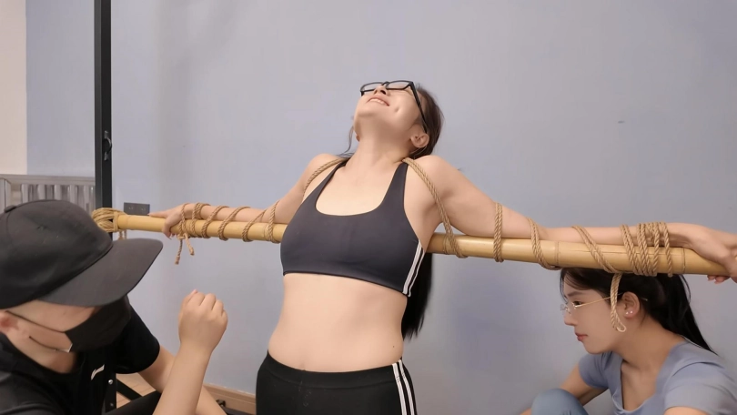 十一和男友把瑜伽教练诱骗到家里,迷晕玩弄,在客厅捆绑玩弄之后又带到密室里面,用麻绳打结拉下面,带上口球,两人一起上,一个挠胳肢窝,一个挠脚底,折磨的瑜伽教练控制不住失禁一大片