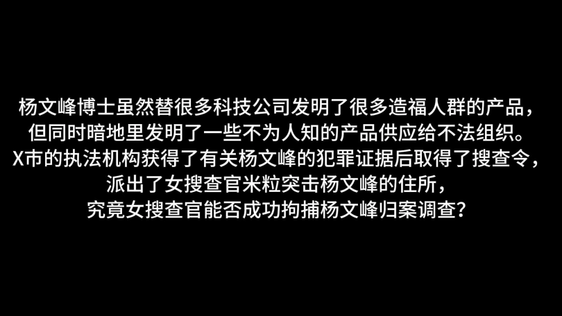 杨文峰博士虽然替很多科技公司发明了很多造福人群的产品,但同时暗地里发明了一些不为人知的产品供应给不法组织。 X巿的执法机构获得了有关杨文峰的犯罪证据后取得了搜查令,派出了女搜查官突击杨文峰的住所,但女搜查官不知就里中了陷阱。杨文峰博士利用新发明的固定手机拍摄功能把女搜查官紧紧地固定,使她完用不能活动。杨文峰博士借机对女搜查官进行非礼,不但如此,他更利用手机拍摄的功能为女搜查官摆出其他姿势继续玩弄。女搜查官感到非常羞耻却完全没有反抗的方法,不能活动的她更被杨文峰博士用作测试另外的手机拍摄功能。拍摄闪过后,女搜查官转眼间已被大量的绳子所捆绑,究竟女搜查官的下场会是怎样?