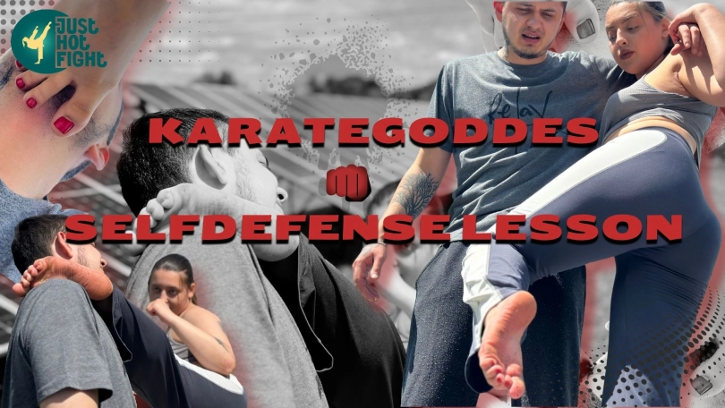 KarateGoddess69 conducts a self-defense class for women outdoors. Feel the power of her punches on yourself and just imagine yourself as a mannequin next to her.