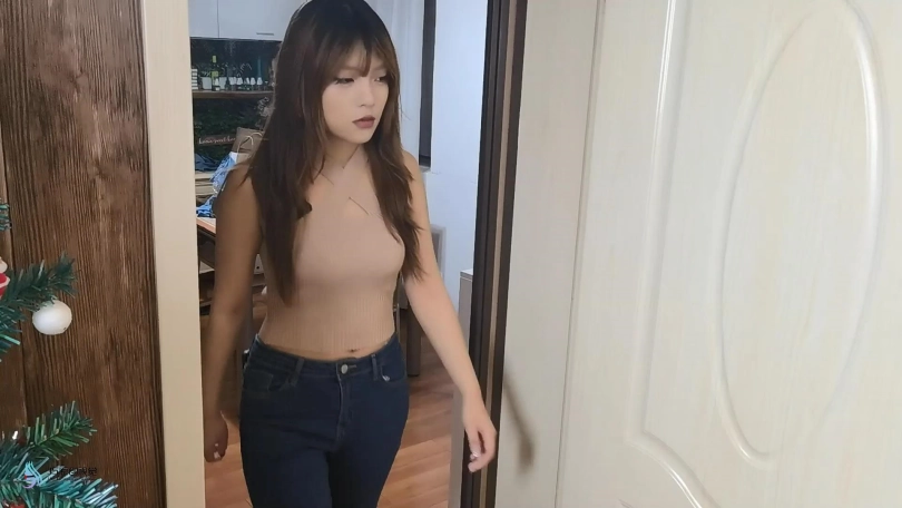 女孩在屋子里走来走去,嘴巴被塞住了(直接胶带封嘴吧)。绑匪用拉链把她的手绑在背后,绑住她的脚和膝盖。然后他用胶带把她的嘴粘起来。她挣扎着跳来跳去,在桌子上发现了剪刀。她设法用它来解放自己。当她准备逃跑时,她又被绑匪抓住了。绑匪把她带到一把椅子上,开始用绳子把她的手绑在椅子后面。她一直在挣扎,但没有用。他把她的腿绑起来,把她的手腕和腿绑在椅子的底座上。然后他用裂口堵住了她的嘴。然后他用胶带把它贴在裂口上(原点布勒嘴,外面贴胶带)。她只能苦苦挣扎。经过1分钟或2分钟的挣扎,她设法逃脱。她还没走出门就又被抓住了。绑匪对她的逃跑很生气。绑匪用胶带把她的手绑在桌腿后面(胶带包手吧),然后把绳子绑在胶带上。他对她的腿和膝盖做了同样的事。最后,他塞了一块布在她的嘴里,用胶带缠住她。她只能苦苦挣扎。