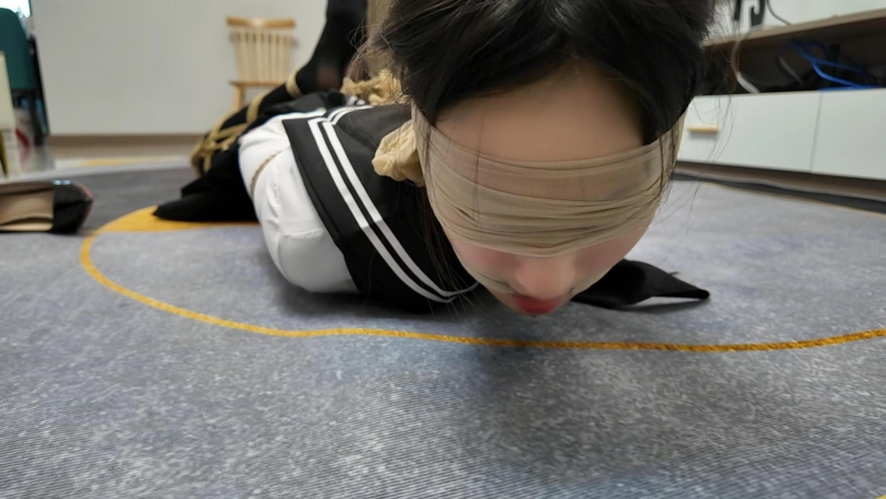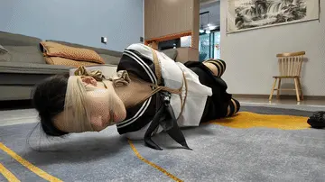 晓倩在家穿上肉丝。外面套上长筒黑丝,不料被早就潜入家里的歹徒捂晕,被驷马捆绑,丝袜堵嘴,丝袜蒙眼...