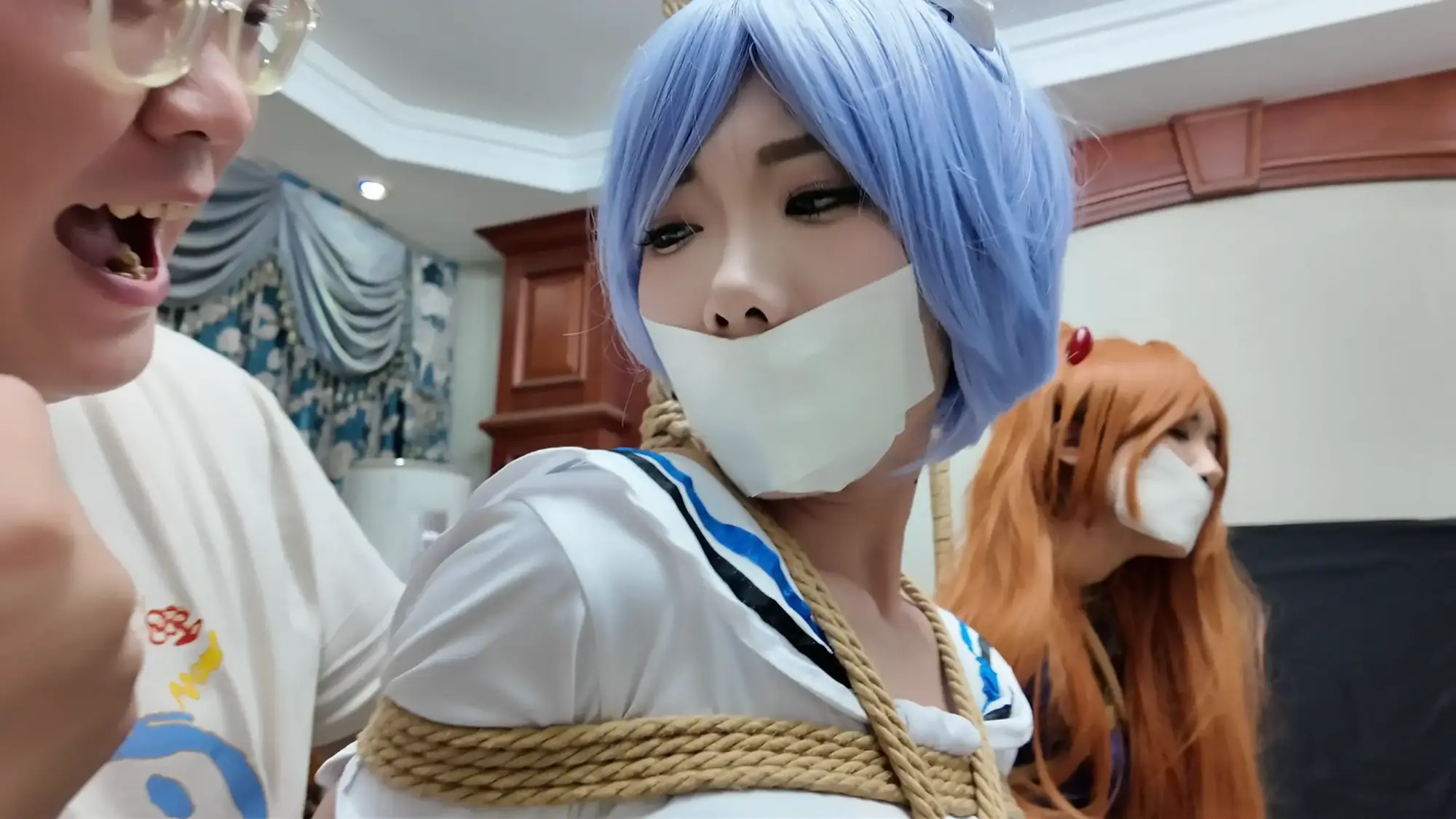 白色水手服“绫波丽”和蓝色搜查官服“明日香”的换装play!