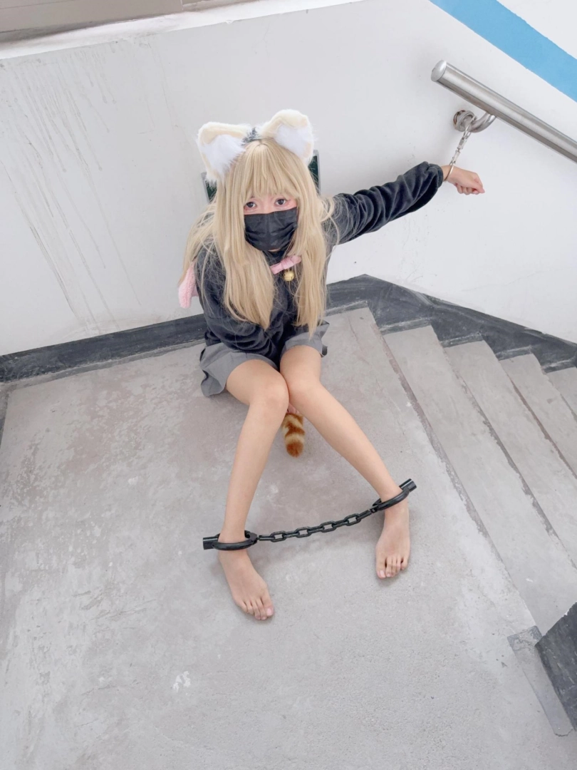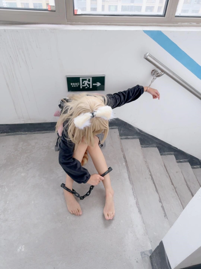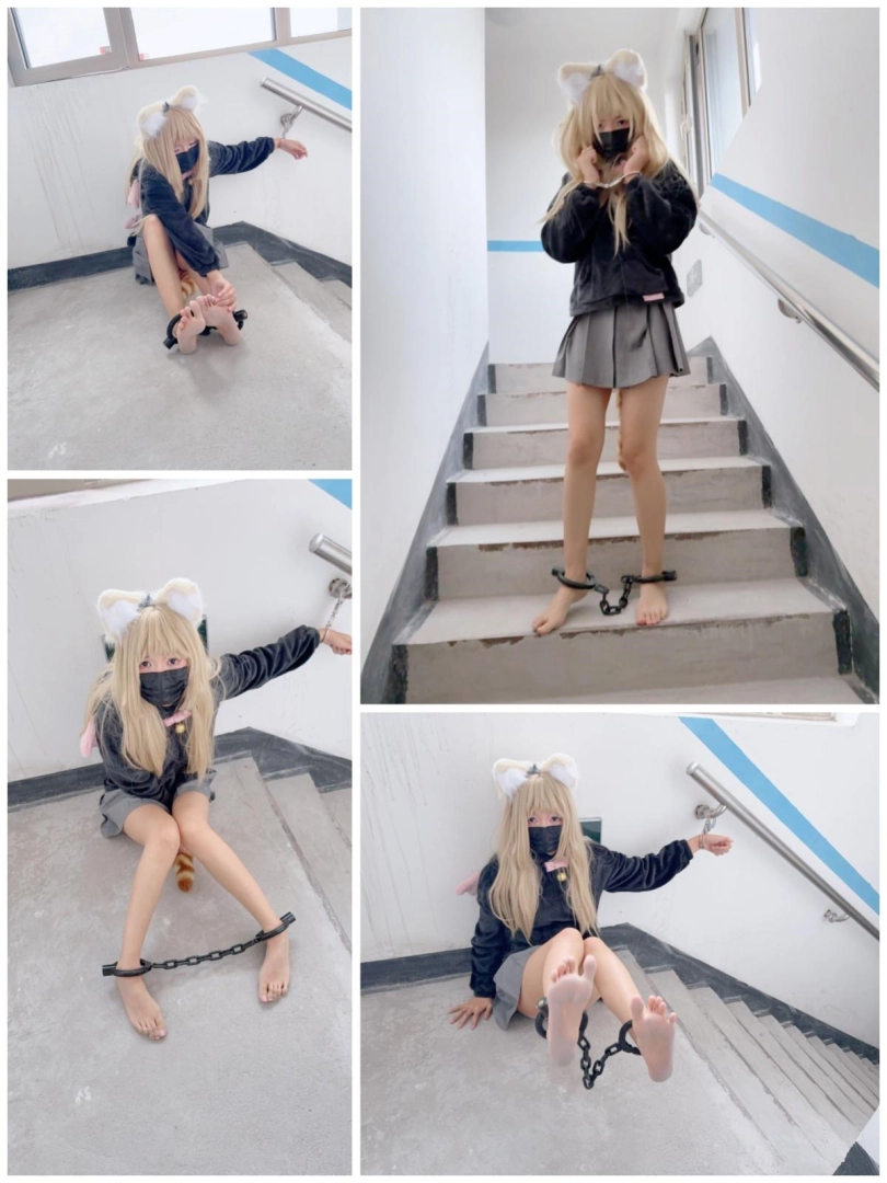 【咕咕精】猫娘黄豆粉の镣铐管理计划-楼梯间赤脚带镣脱出挑战!附近一直有人超紧张!