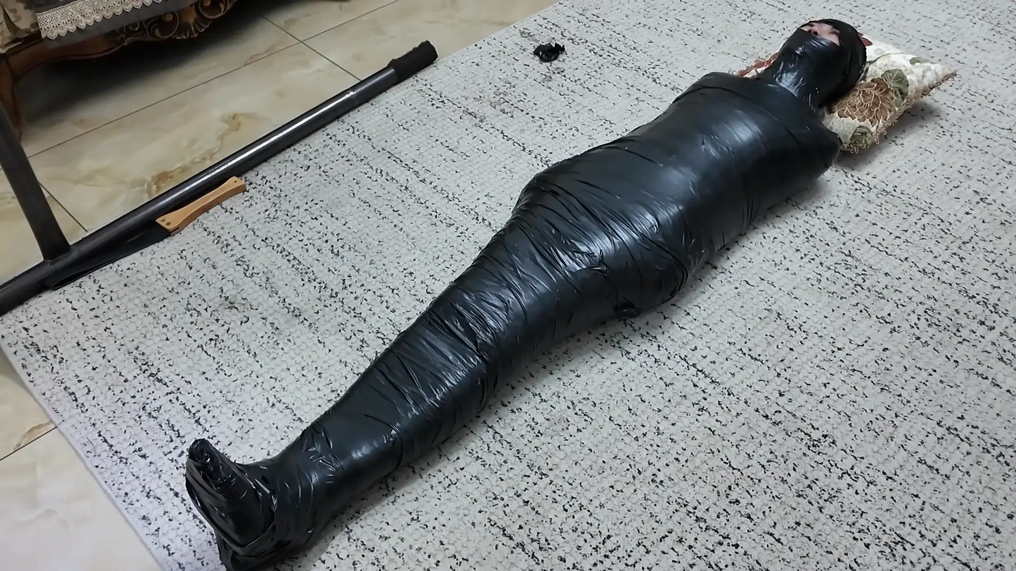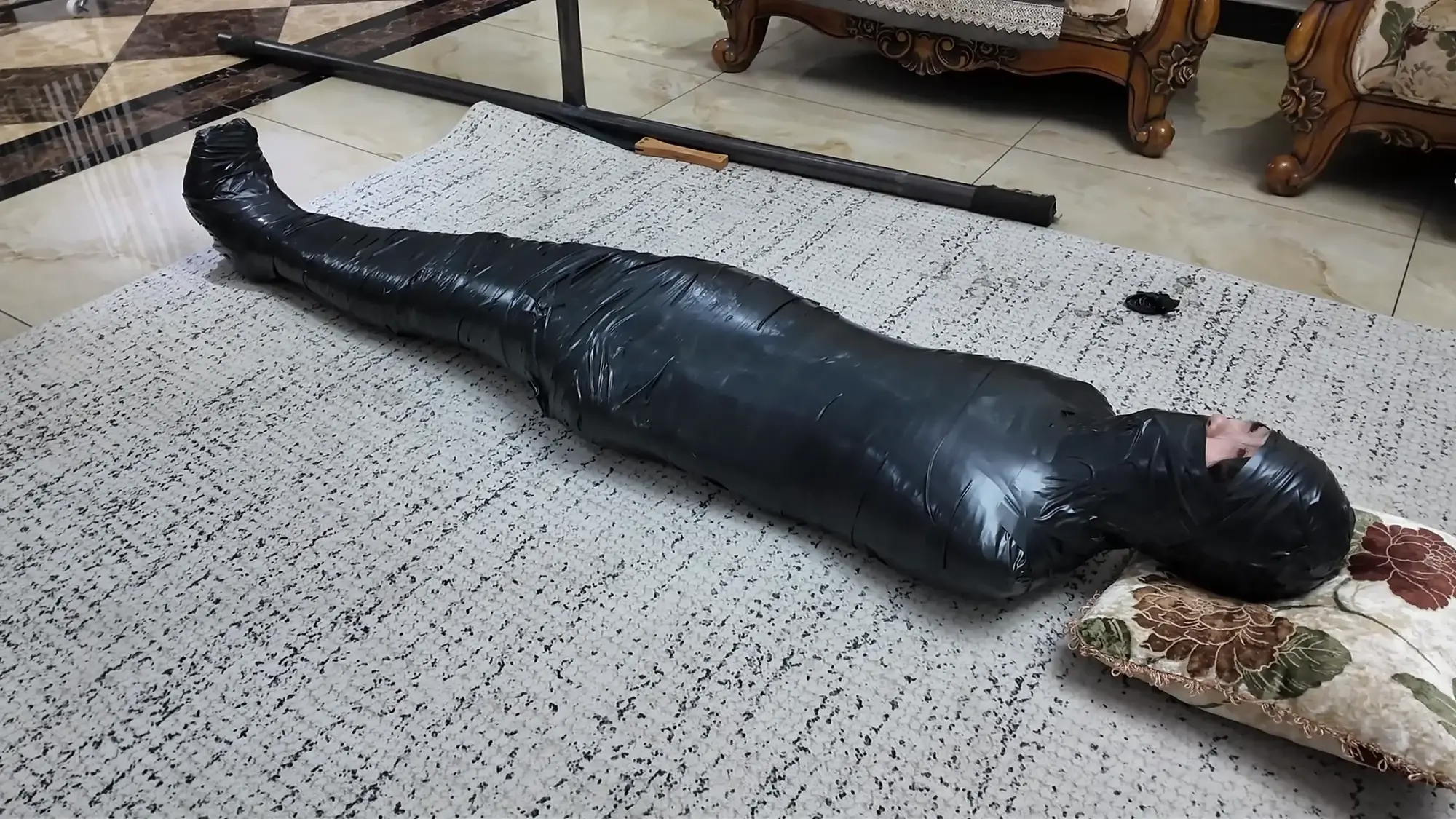 完成了后,米粒欣赏了一下自己的作品,非常满意,任由雨琦在地上尖叫,挣扎。并说:喜欢吗,这是给你的最后的礼物,累坏我了。说完,像抚摸艺术品一样抚摸着被全包的雨琦。最后,米粒说:好了,你在这等着吧,会有人把你接走的。然后就离开了。雨琦绝望了使劲挣扎也没有用。放置了一会后,有一个陌生人进来,说:你这是怎么回事,怎么被绑成这样。雨琦以为救星来了,就不停的喊。然后陌生人说:不要怕,我帮你报警。说着拿起手机打电话,然后说:嗯,我对这次的货很满意。我会把钱打给你的。雨琦听后害怕的摇摇头。陌生人把电话给雨琦听,电话那头传来米粒的声音:雨琦啊,这个客户你应该也见过,是你小情人的竞争对手啊,最喜欢给人希望然后又给人绝望的,希望你不要怪罪哈。客户摸着雨琦的脸,然后说:那家伙眼光挺好的嘛,可惜了,那你就和我回家,让我好好玩玩吧。说完用易碎品胶带把雨琦