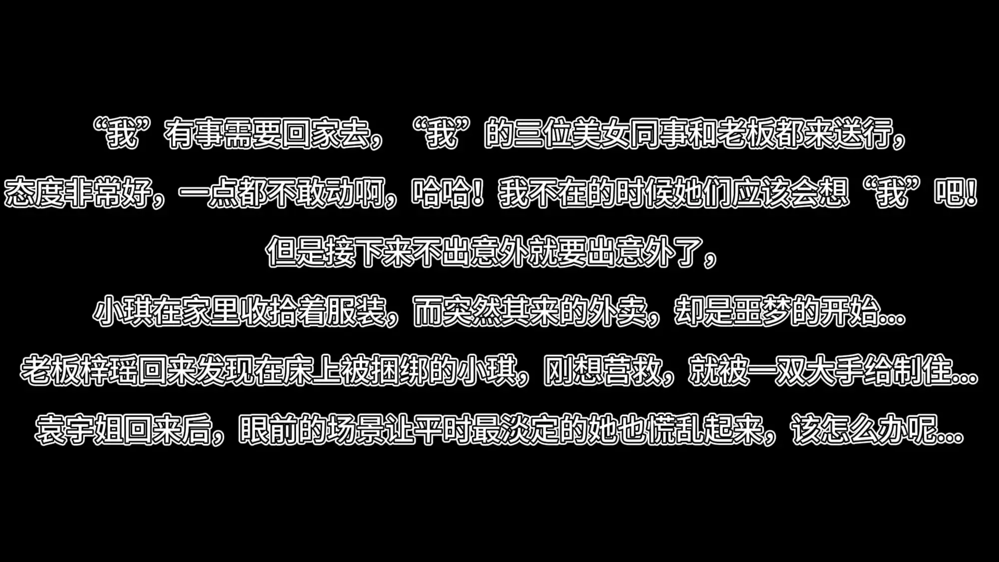 老板梓瑶回来发现在床上被捆绑的小琪,刚想营救,就被一双大手给制住...
