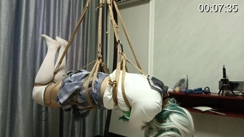 流萤被横着吊了起来,失去了着力点更难承受电击刺激了,远程控制码还被发到了陌生人手里,可怜的流萤在无法反抗无法休息的情况下不停挣扎。