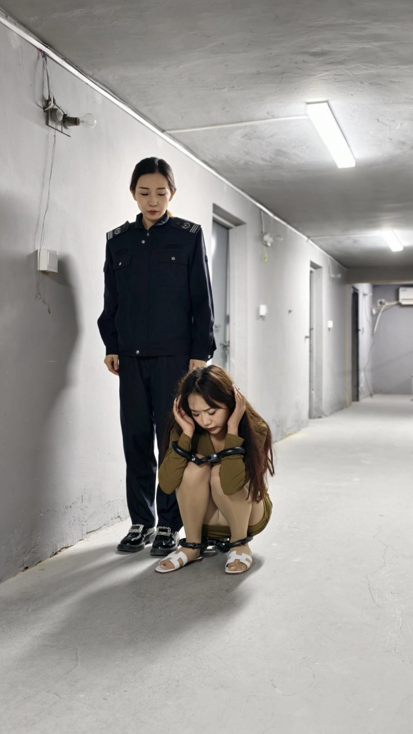 【忘忧社】驴驴回归,饰演电诈女犯被抓,带其审讯,指认现场,带连体镣铐重镣,钉死镣死铐,重脚镣,死拷最后被判死刑,五花大绑执行枪决。