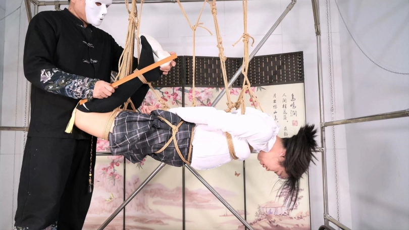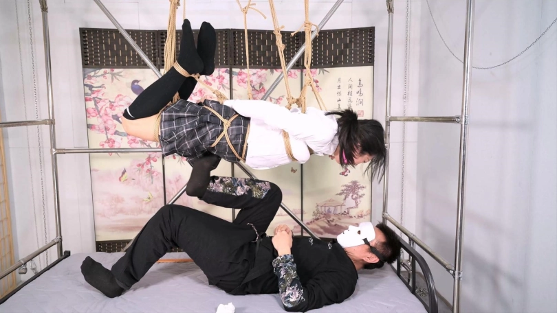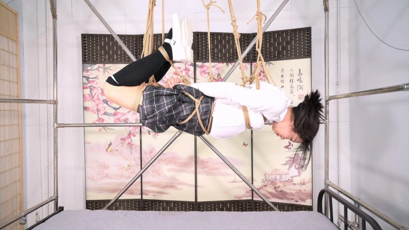 这个为所欲为床,也叫梦想之床,圆了一个小小的梦想,那就是睡觉时,平吊一个妹子,就是有个小麻烦,给她戴上口球,她的口水会止不住下流,本人用戒尺威胁她不准流,可是还是会流到你的脸上,诸位给出出主意吧。本次沐小雨也体现了专业绳模的素质,本来从从容容吊好了,本人手欠把腿搞了个驷马绑法,大腿上的两根绳子一直别着她的小腿,她其实一直在忍着完成了拍摄,在最后的放置阶段,在下面其实是可以感受到她承受的压力