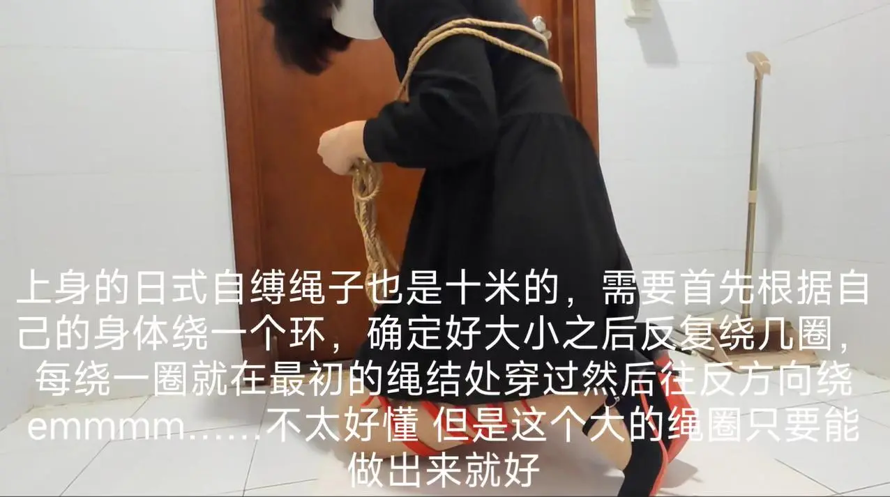 【柚里】有惊无险的折腿缚+日式后手自缚&红底高跟鞋+肉丝袜+黑色连衣裙