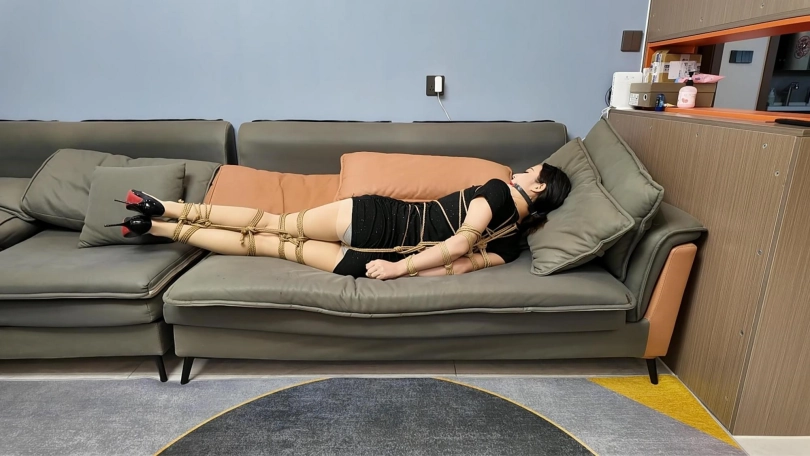 晓倩被龟甲捆绑,直臂驷马放置,十个脚趾也被紧紧捆绑,这个姿势太难受了,嘴也被口球堵着.