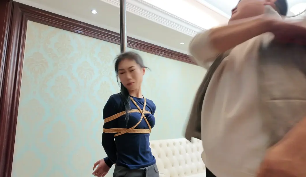 昏迷的凯丽苏醒过来,发现自己被结结实实地绑在一根柱子上,嘴也被胶带封住,于是开始挣扎,挣扎一段时间后,看到头目出现,不屑地扭过头,头目看着被抓的凯丽很是得意,撕掉凯丽的胶带以后,先是嘲讽了她几句,最后让凯丽屈服她,凯丽不屑地回应头目与其浪费时间还不如杀了她,头目于是开始对凯丽进行鞭打,没想到凯丽没有一点屈服样子,于是开始从生理心理上开始折磨凯丽,不停地对凯丽上下其手,凯丽一边挣扎着,一边痛骂头目,头目见这么久凯丽都没有屈服,于是给了凯丽几下重击,接着对凯丽说需要换更有趣的手段让凯丽屈服了,于是再次迷晕了凯丽。