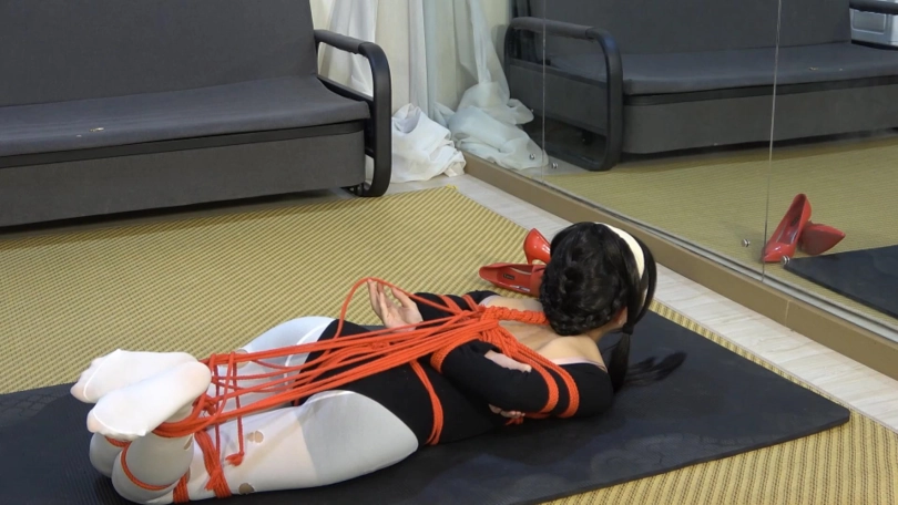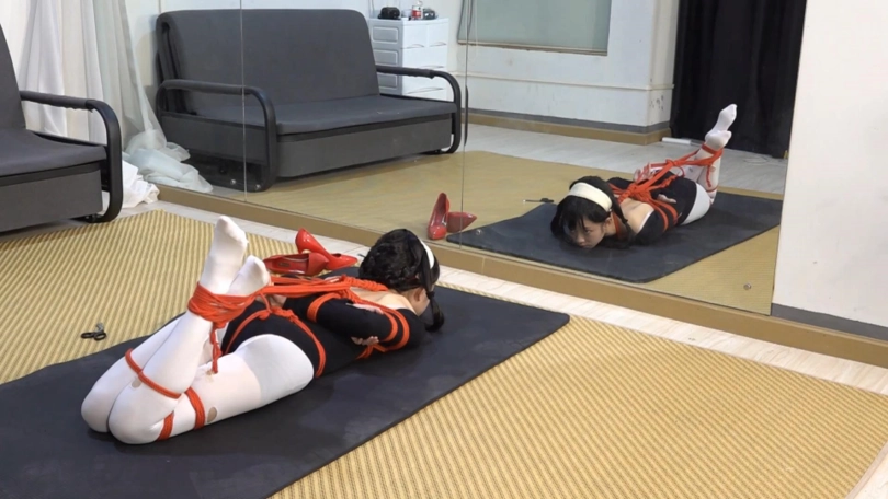 约尔醒来,发现自己被绑成驷马上身被红绳捆绑,胸部被勒得很紧,[X_X]被勒上了股绳,下身丝袜有了许多破洞,双腿被红绳交叉捆绑着,脚腕、膝盖、大腿根都被绑上绳结。