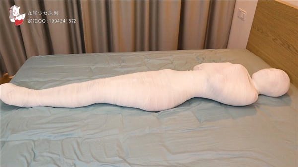 【九尾少女】小九尾绷带木乃伊多层全包初体验,白丝体操服,封闭双眼与听觉,多层绷带包头呼吸抑制,全包木乃伊封闭禁锢!