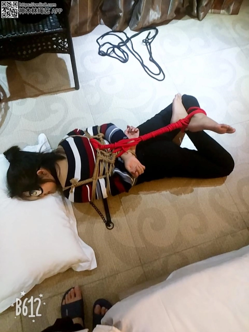 向紧缚实验室致敬,测试女孩在被绑状态下的移动能力。