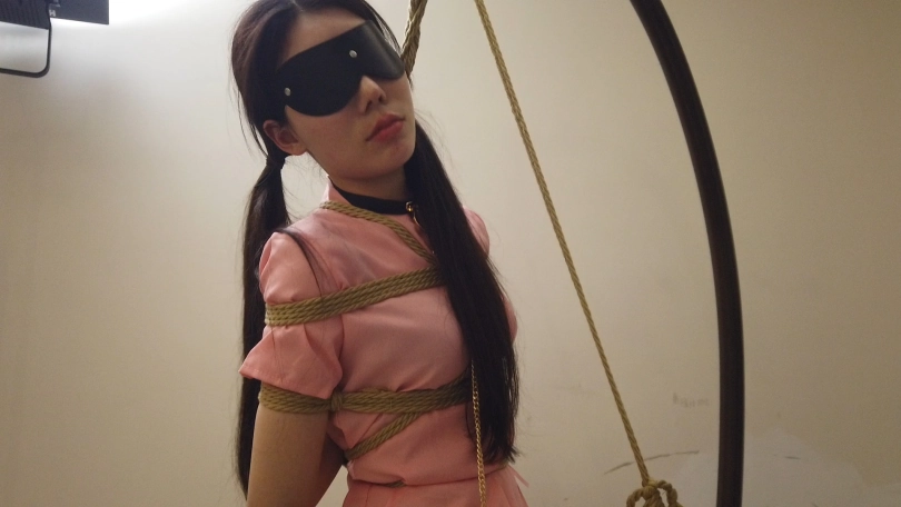 雅雅的白丝护士装,片足缚的鞭打调教。后高手加上片足缚,再戴上开口器。