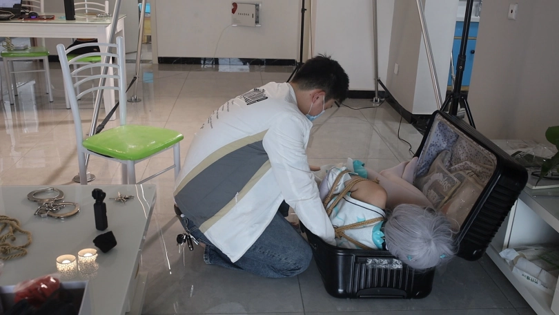 摄影师在网上看到了妹子自拍的照片心生邪念,把妹子请到家中做客,相谈甚欢之时摄影师给了妹子一个盒子(装道具的那个盒子就行),说是一定要让妹子收下的礼物,妹子打开一看,里面放的尽是绳子跳弹[不可描述]手铐这些调教道具。妹子一时惊得不能动弹,摄影师趁机用沾满麻醉剂的手帕将兔子捂晕。摄影师脱去妹子的鞋子,肆意的玩弄着觊觎已久的妹子美丽的身体。玩到一半时,他脱下妹子原来穿的过膝袜,用着两条袜子封住了妹子的眼和嘴,嘴上再蒙上一层胶带,再给妹子换上了一条白色连裤袜。玩得有些累之后,摄影师把妹子简单地绑了起来,去隔壁房间休息了。惊醒的妹子挣脱了束缚,在尝试逃离的时候被赶来的摄影师再一次捂晕。摄影师用手铐脚镣束缚住妹子后把她装进一个麻袋(要有装进去和拿出来的镜头)中扎紧袋口,把她带到了妹子自己家中。