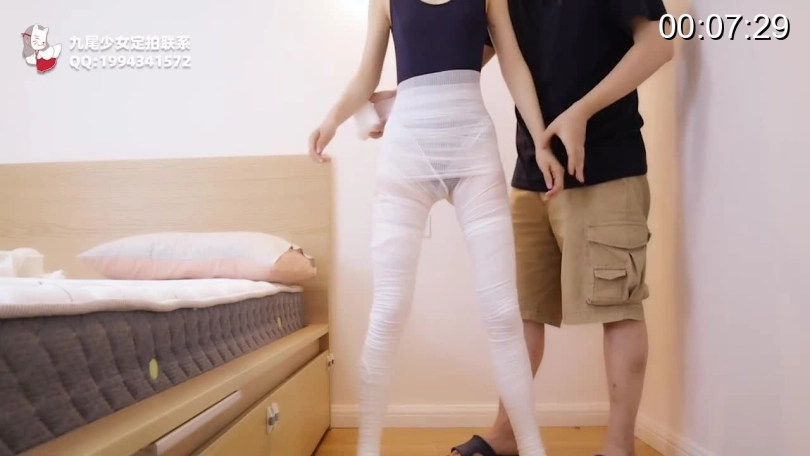 九尾妹子绷带木乃伊多层全包体验升级,8大卷绷带(长度40米*8)多层缠绕包裹,中间加上大块纱布包裹,木乃伊经历实录,