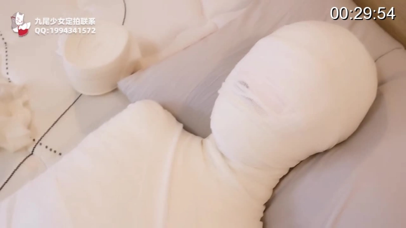 › 【九尾少女】300米五层绷带+纱布包裹的木乃伊全包地狱体验,木乃伊经历实录,头部被多重严密包裹全身紧绷更加使呼吸被严重压迫,全包木乃伊封闭禁锢挣扎!