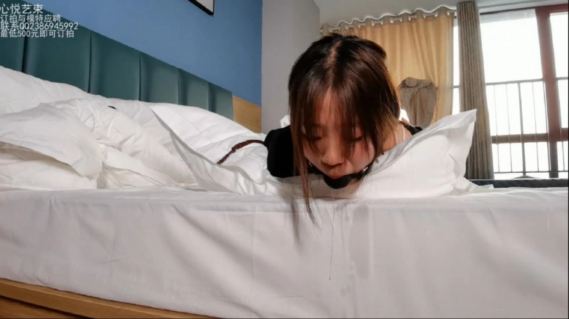 开始上身绑好以后,把她靴子拖了,露出丝袜脚,妹子还有点害羞