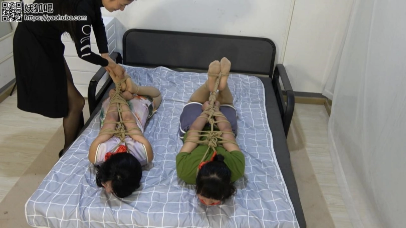 女人贩更换各种花样玩弄二女,终于有一次女明星抓住机会解开绳子准备逃离报复助理。不料被人贩堵了个正着。女明星和助理被驷马绑在床上,勒住嘴巴等待买家的到来。