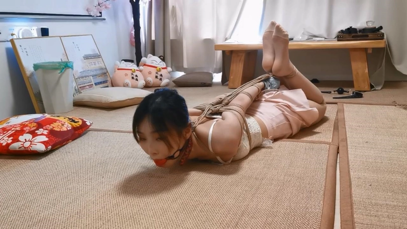 舞蹈生美少女雨琪,小吊带的搭配这个角度大家有没有觉得非常像周冬雨。而这次考验雨琪的是她从来没尝试过的2小时超长时间直臂驷马放置,并且鉴于雨琪在放置过程中多次自己解开绳结,这次用胶带包住了双手使她完全没有挣脱的可能性,绑的也是非常紧雨琪翻身都十分困难,只能看着自己的口水把榻榻米都打湿一片了。