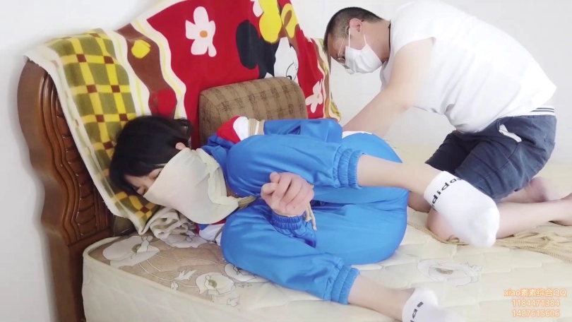 第三集:司机坐在床边示意女生走到自己面前,女生夹紧身子害羞站过去,司机开始捆绑TJ女孩,被司机双手抱住双腿的姿势捆绑起来, 司机不一会就在旁边睡着了,由于bangbang的噪音和女生的呻吟让司机无法睡着,司机翻了几个身,随后大怒 司机重新更严厉的捆绑了女生,用绳子把bangbang固定在女孩的下面 手也捆住握住bangbang完全动不了然后让女生重新抱好双腿靠回床头,这一次司机让女生。双手握住长bangbang的手柄,位置正好压在女生yin部,用绳子把长bangbang的头部和dang部股绳连好,这回,女生双手会把长bangbang一直抵在自己的yin部,如果女生晃动双手,则会牵拉裆部的股绳,也会通