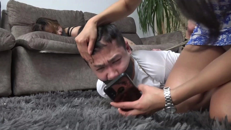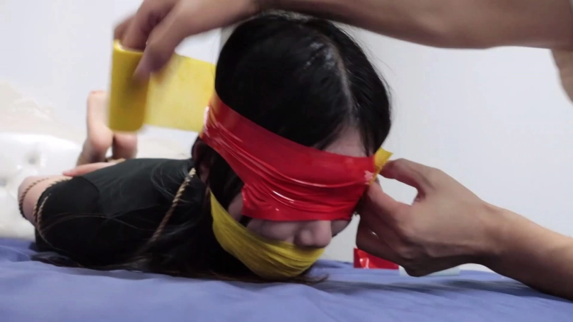 看点:男女二人严厉捆绑;强悍女反派;拍照羞辱+胶布绷带缠绕封眼;呜呜闷哼挣扎。