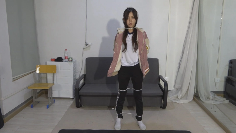笑容甜美的然然,长相酷似一位女演员,素颜颜值也是很抗打。一身邻家学生妹打扮,被绑起来看着还是很楚楚动人的。
