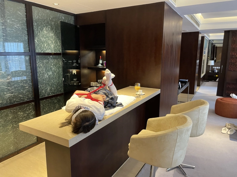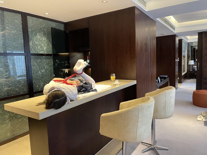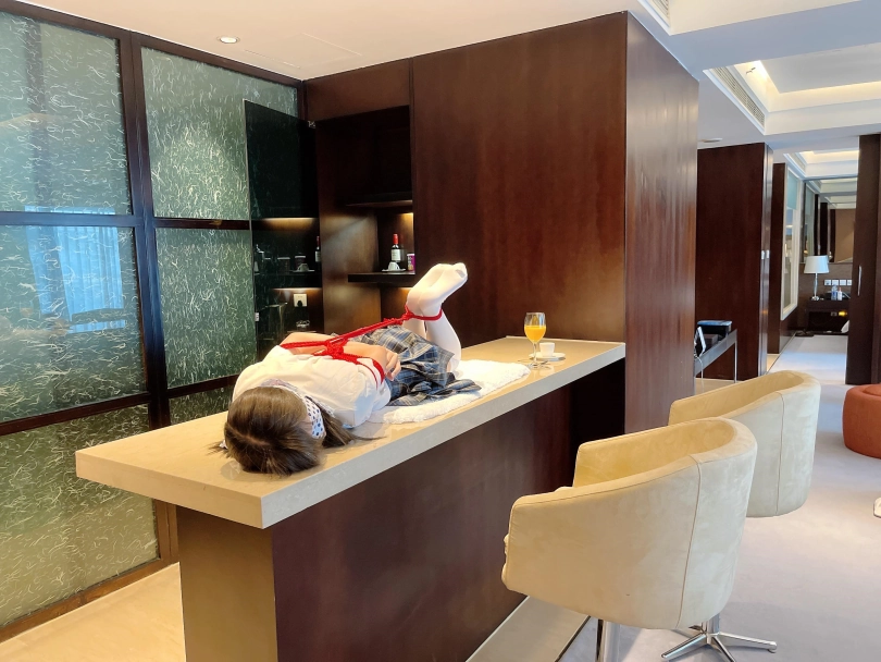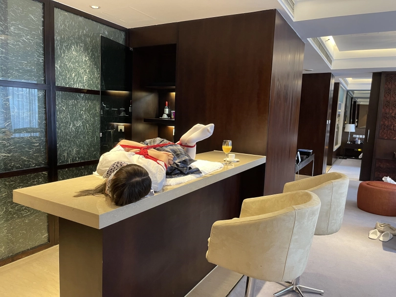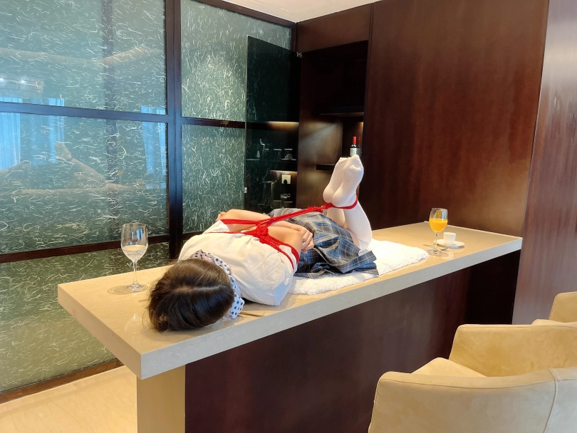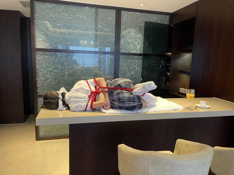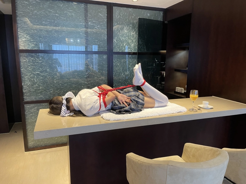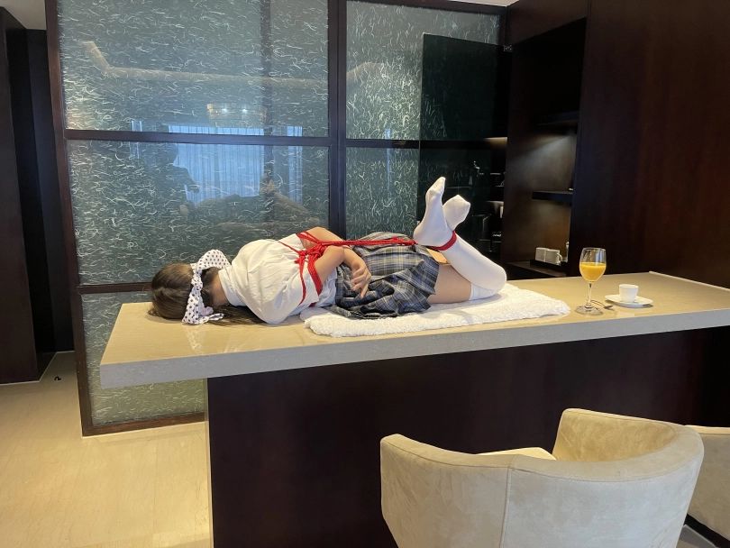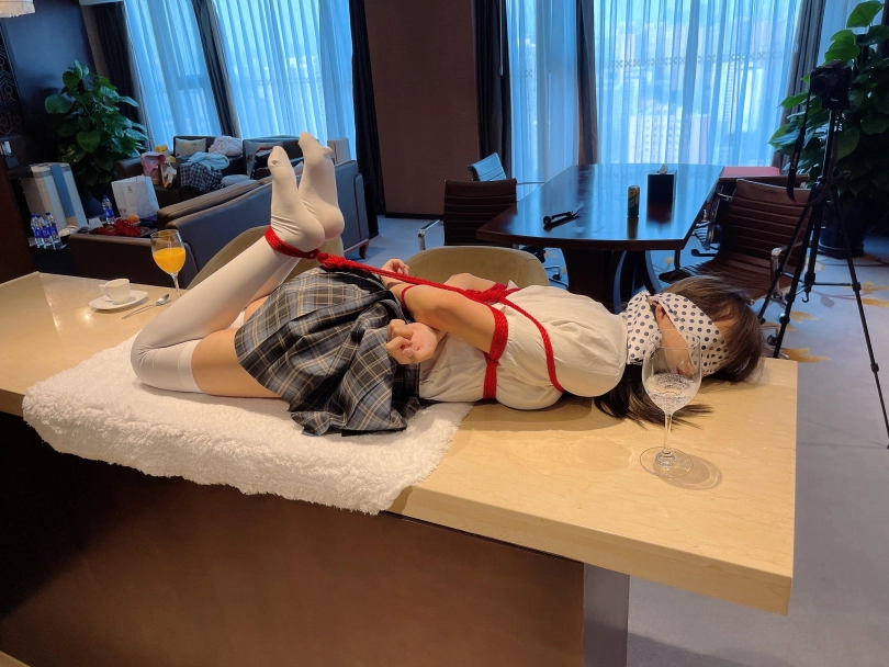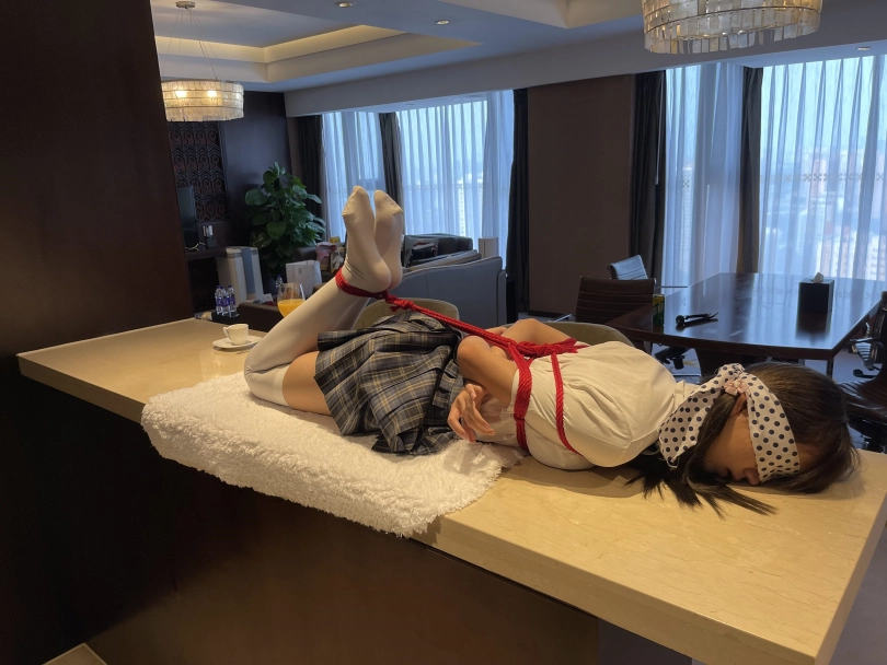 可怜的小茶茶就这样被驷马捆绑放置在吧台桌面上,周围人审视的目光让她浑身不自在,羞耻感让茶茶不断的扭动着身体。男人时不时的抚摸让她不安感越来越强,哪怕放置时也下意识害羞的扭动着自己的娇躯。小萝莉可爱的娇躯被无情的拘束起来,大肆展示着。少女不知道的是,客人们马上就要到了....
