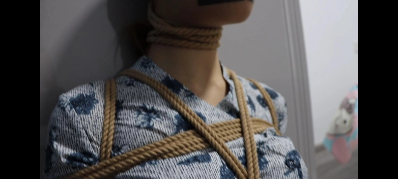 黑丝空姐遭到绑架,醒来后发现自己已经被绳子捆绑全身,眼睛和嘴巴都被黑色胶带封住,绑匪为了防止胶带脱落,还给空姐套上了特制的丝袜头套,然后还将空姐的脖子系上绳套,固定在衣柜把手上,这样,空姐就完全无法逃脱了。。。最后,丧心病狂的劫匪决定。。。。。。