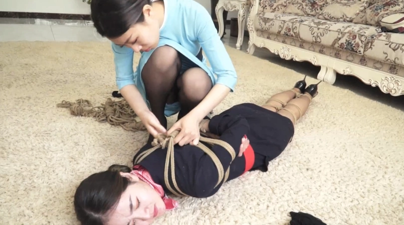 上作中被绑者的朋友前来复仇,假装做前来送档案的空姐,进入绑架者的家中,并设计迷晕了她。不愿意屈服的绑架者,被逼接受闻鞋,绑在椅子上折磨的惩罚。百般折磨的空姐到底会不会吐露实情呢.