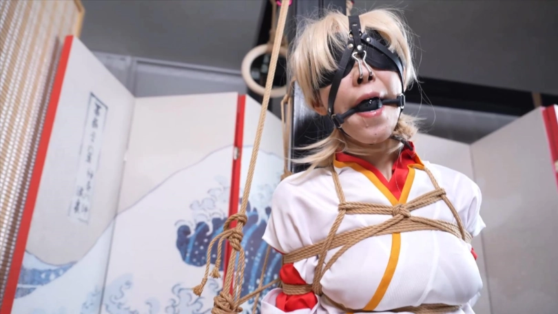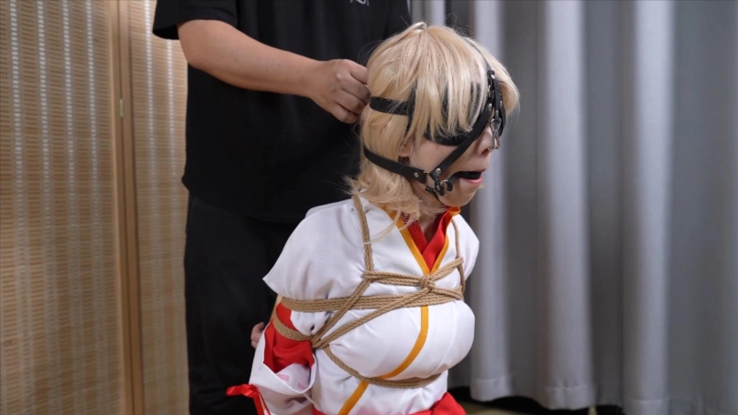 中期状态:单脚吊缚+柱缚,tk+马具口塞流口水,抚摸