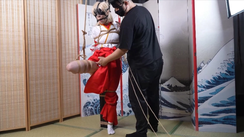 后期状态:双腿折腿+足袋的大拇指细绳拉扯+棒棒