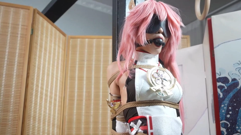 › 【象人】八重神子 小O-cos八重神子,全装柱缚+黑丝驷马+足袋驷马
