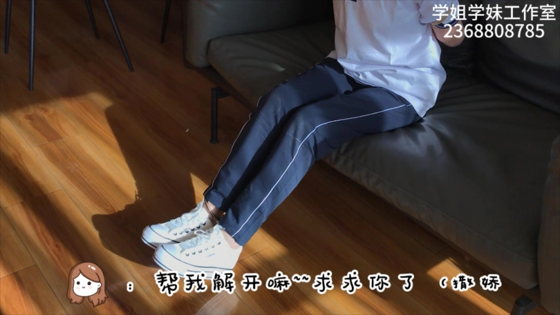 › 【学姐学妹】高考前的周末——校服白色帆布鞋五花带镣行走下跪绑腿