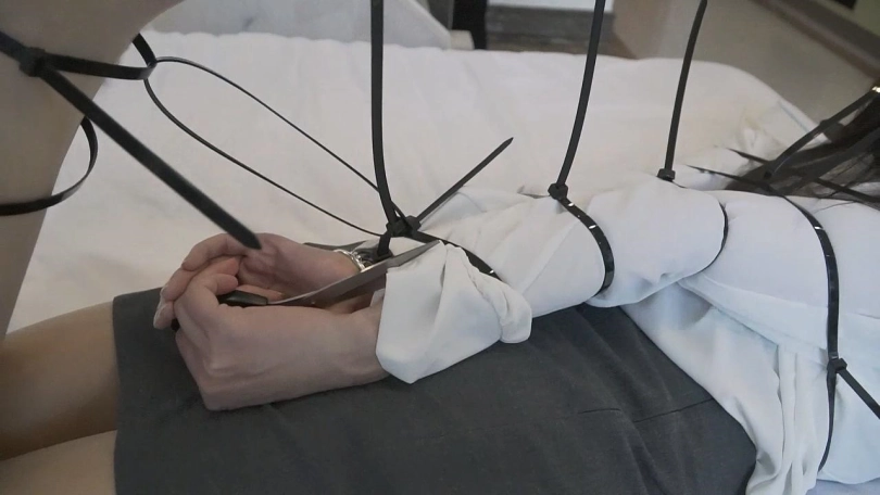 小思参加一个紧缚挑战游戏,挑战一共分4轮,第一轮在日式紧缚鸭子坐的情况下脱掉脚上的棉袜;第二轮在被扎带欧式直臂驷马紧缚的情况下用剪刀剪开所有扎带;第三轮在欧式直臂丝袜全包口球堵嘴的情况下唤醒小爱同学;第四轮在日式单腿吊的情况下取出脚底的钥匙。每轮挑战限时10分钟,如果挑战失败了则在最后的惩罚篇中加时5分钟,小思为了不让最后的惩罚篇过于漫长要努力去完成每一轮挑战。