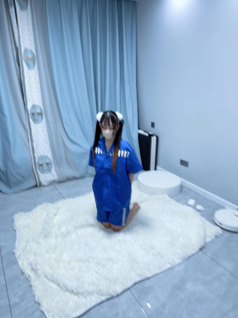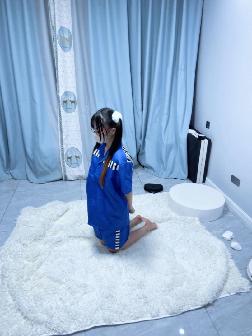 到了地方命令糖糖趴墙站好搜身,抬起两个脚掌检查摆弄一下脚趾缝,换上蓝色短袖短裤囚服。