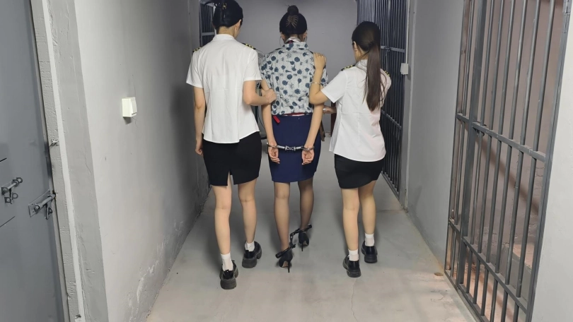 查看完整版本: 【忘忧社】新模特若琪饰演一名帮忙境外运输D品的空姐,被帽子姐姐抓获,一开始拒不承认,被吊起手脚狠狠惩罚,一会就老实了,在监狱里带手铐脚铐,指认现场,新模特希望大家多多支持,喜欢若琪的欢迎。